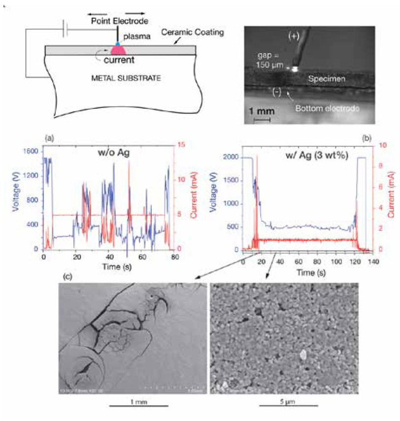 - Doping the ceramic powders with a metal powder, at just 3 wt.% of silver, stabilized the flash parameters. The dopant also prevented the degeneration of the plasma during the movement of the electrode by reducing the electric field necessary to sustain the flash.