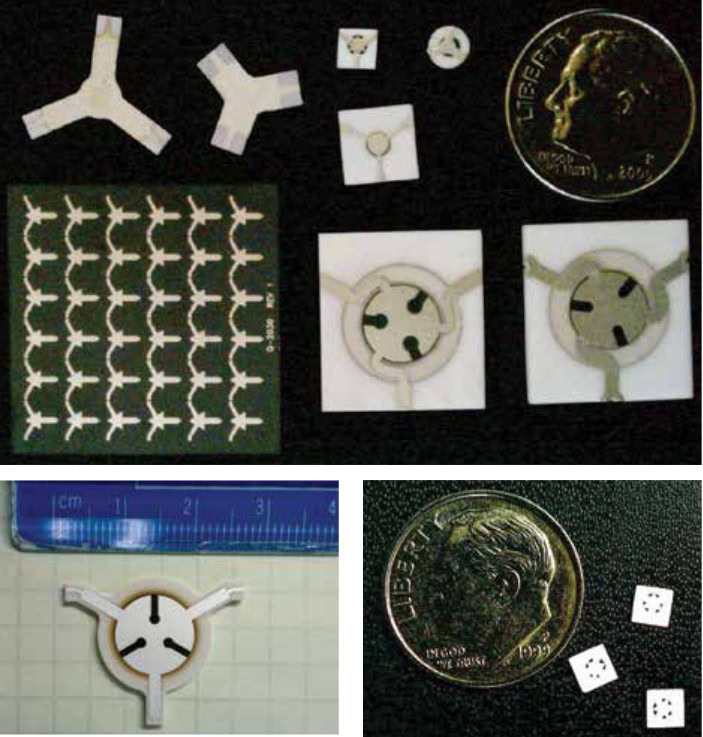 Figure 5. Photographs of integrated cofired mm-wave circulator devices. Credit: Courtesy of D. Firor, Iain Mac Farlane, and Dave Cruickshank (Skyworks RF Ceramics)