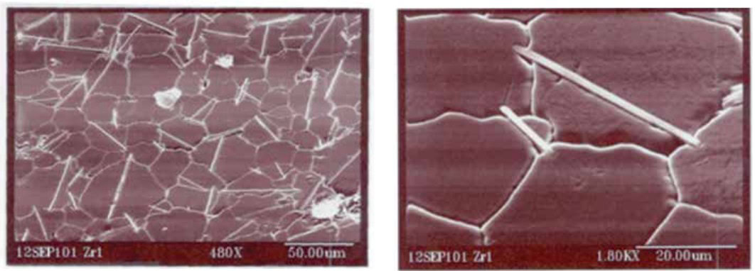 Figure 2. SEM micrograph of intergrowth phases at antiphase domain boundaries in barium zinc cobalt niobate. Credit: Davin Phelps and Mike Hill, Trans-Tech Inc. (Skyworks RF Ceramics)