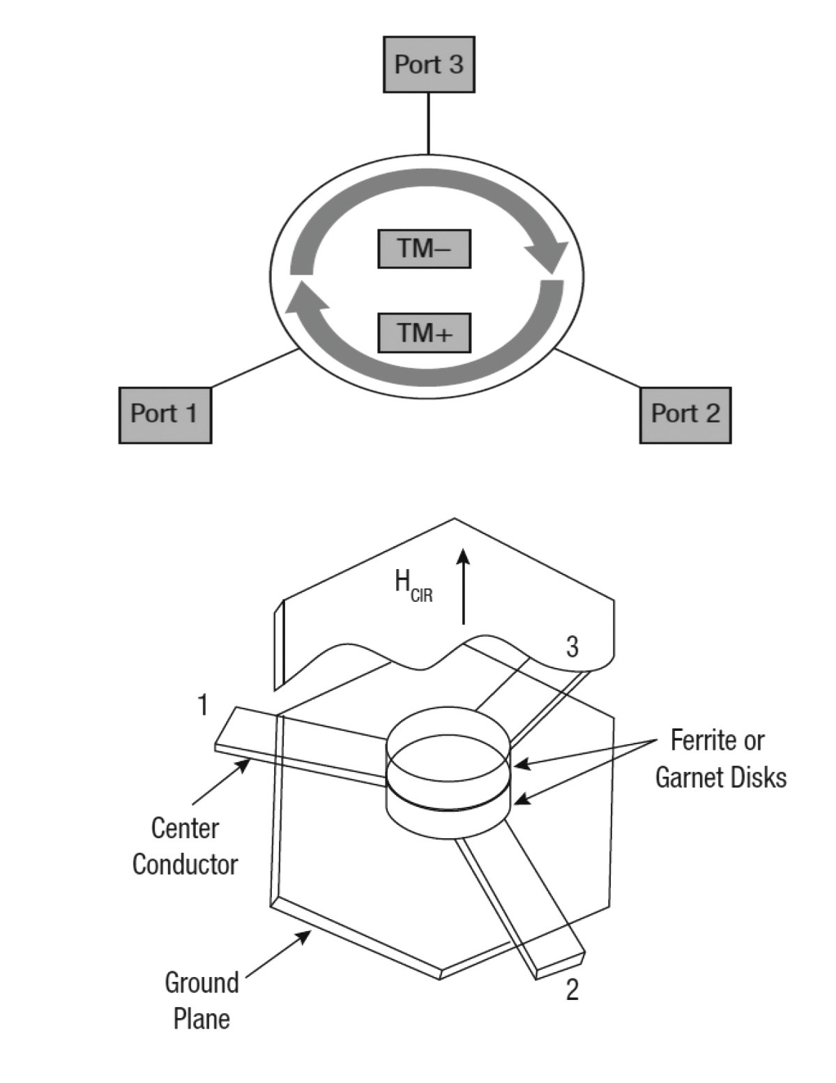 Figure 3. Schematic of circulator operations. Credit: From Skyworks RF Ceramics App Note 202840B – Use of ferrimagnetic material in circulators
