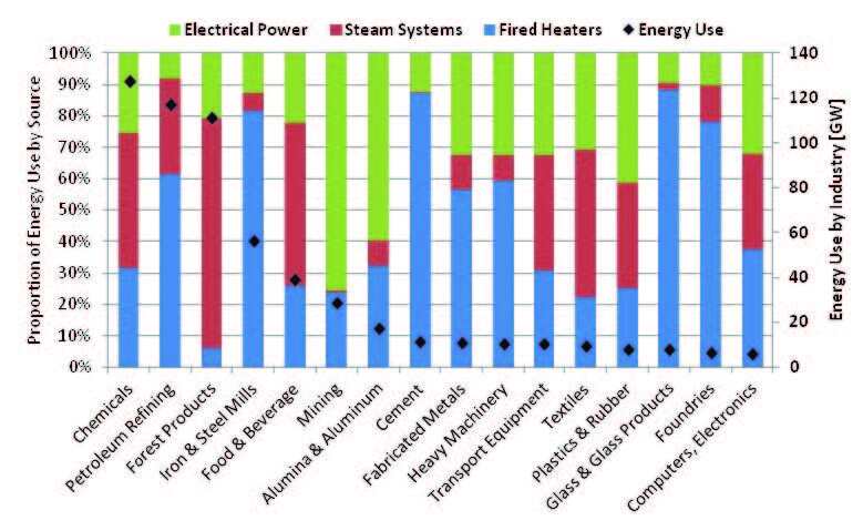Figure 7. Energy use by U.S. manufacturing and mining industries for 2004.15