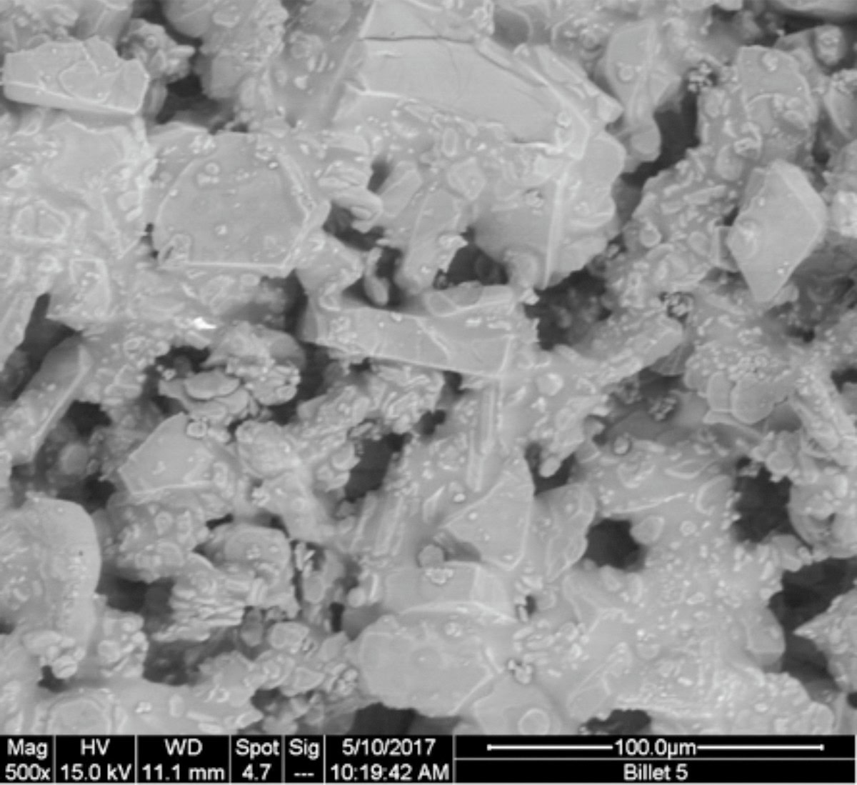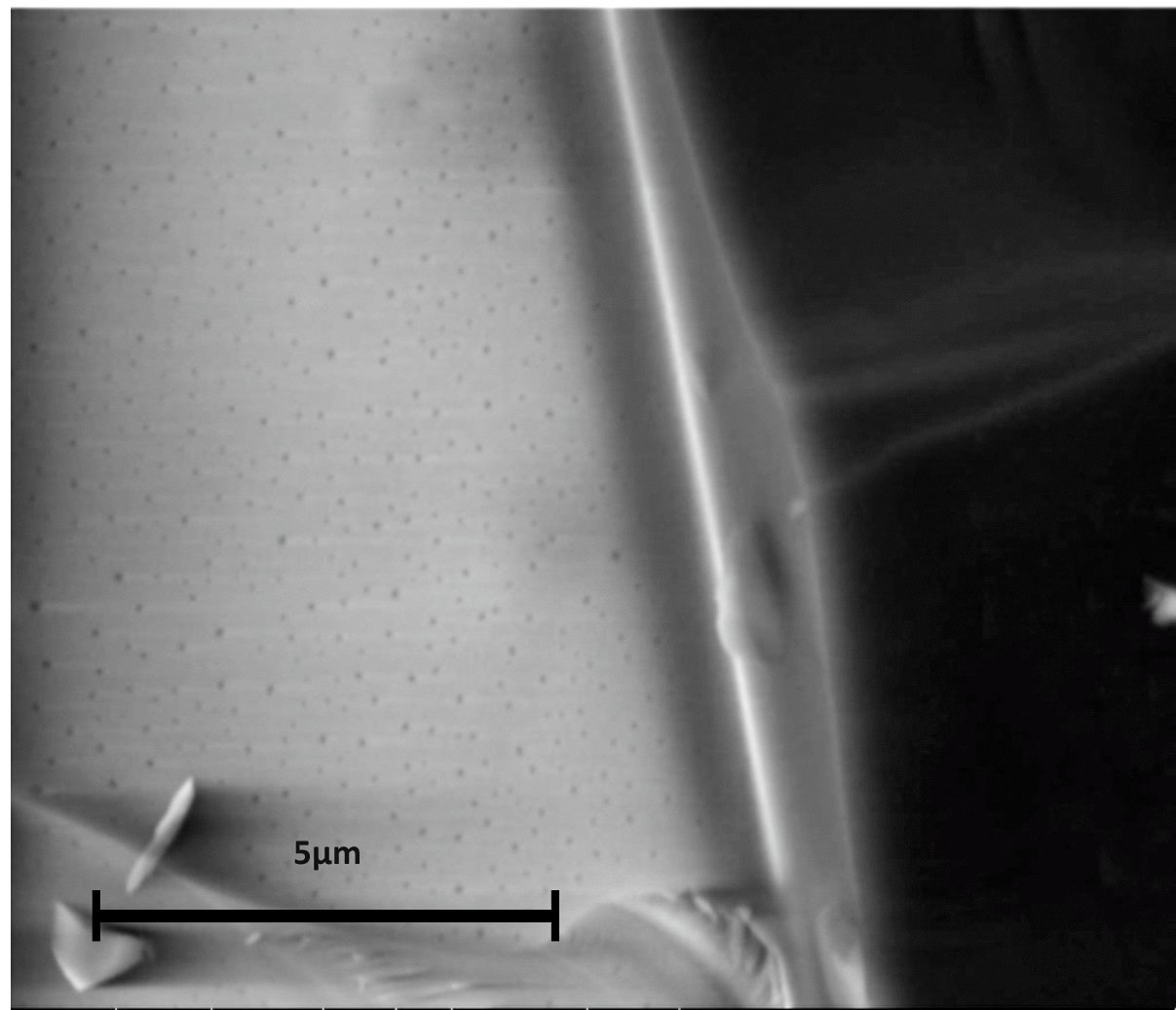 Figure 6. Higher magnification scanning electron micrograph of batch A sample showing the area within the rectangle in Figure 5. Credit: Gerry Wynick